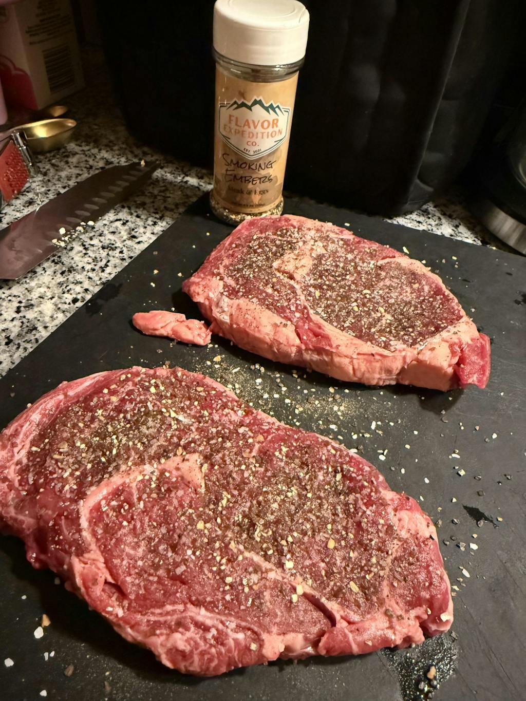 I used Flavor Expedition’s Smoking Embers seasoning on our Valentine’s Day ribeyes, and it completely elevated the meal. The blend has a perfect balance of peppery warmth and savory saltiness, creating a deep, smoky flavor that enhances the steak without overpowering it. It helped form a gorgeous crust and brought out the natural richness of the ribeye in every bite. This seasoning is bold, balanced, and absolutely delicious — definitely a new staple in our kitchen.